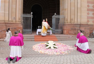 Bischof Wiesemann feierte mit Dompfarrei und Domkapitel gemeinsamen Fronleichnamsgottesdienst im Speyerer Dom – Segen am Altar vor dem Dom für die Stadt