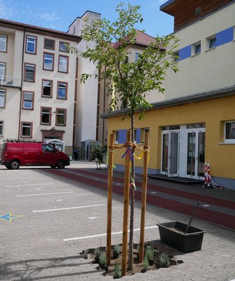 Im Vorfeld hatten sich Schülerinnen und Kollegium mächtig ins Zeug gelegt, der Veranstaltung im Schulhof trotz Coronaauflagen einen würdigen Rahmen zu geben, für Abstände und Schattenplätze zu sorgen und die musikalische Gestaltung gesanglich und instrumental nicht zu kurz kommen zu lassen.