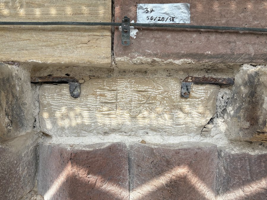 Besonderer Fund: Eisenklammern aus dem 11. Jahrhundert am Südostturm (Juni 2025) © Domkapitel Speyer, Foto: Hedwig Drabik