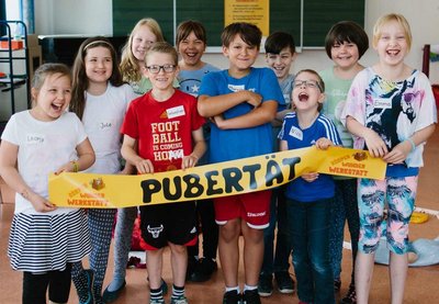 Der Workshop wird in gemischten Gruppen (mit Mädchen und Jungen gemeinsam) durchgeführt, damit die eingeteilten Klassengruppen bestehen bleiben können. Auch ist im Workshop frontaler Unterricht möglich, das Material wird an der Tafel präsentiert und Bodenbilder werden auf Tischhöhe gezeigt, so dass die Abstandregeln eingehalten werden können. Damit trotz des Frontalunterrichts das Thema spannend aufbereitet ist, erhält jedes Kind einen persönlichen Umschlag mit Materialkarten, die nach und nach gemeinsam enthüllt werden. Es gibt Überraschungstüten, die die vielen Veränderungen in der Zeit der Pubertät bildhaft darstellen.