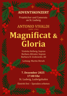 Ludwigshafen. Am 7. Dezember um 17:00 Uhr findet in St. Ludwig in Ludwigshafen das alljährliche Adventskonzert statt. Zur Aufführung kommen dieses Jahr festliche Werke des Barockkomponisten Antonio Vivaldi (1678-1741).