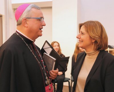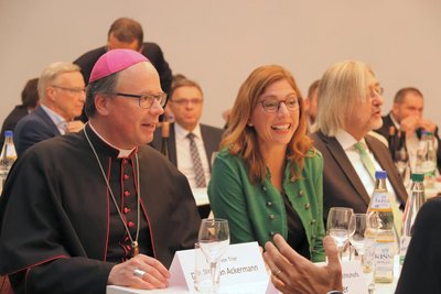 In der Verteidigung einer offenen und pluralen Demokratie seien die Kirchen wichtige Partner. Die Ministerpräsidentin appellierte an alle Katholiken und Katholikinnen, sich für das Gelingen des Synodalen Weges einzusetzen, der am ersten Advent beginnt. Die Kirche müsse ihre Krise überwinden, damit sie weiter eine starke Stimme für Menschlichkeit in der Gesellschaft sein könne. Nach dem Grußwort Dreyers sprach der Limburger Bischof Dr. Georg Bätzing ein abschließendes Wort des Dankes.