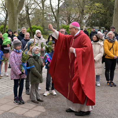Speyer. Bischof Dr. Karl-Heinz Wiesemann begrüßte in seiner Predigt zum Palmsonntag im Dom zu Speyer insbesondere die Kommunionkinder. Im Angesicht des Kreuzes „scheint die Welt einen Augeblick stillzustehen, dann geht es weiter." Ist das Kreuz ein Zeichen der Stärke und Kraft, das die Menschen inne halten lässt? Oder ist es ein Zeichen der Schwäche und Ohnmacht - selbst Gottes in dieser Welt? Diese Fragen seien aktuell.