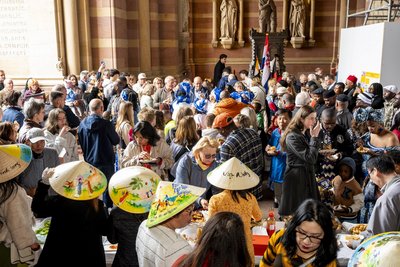 Speyer. Unter großer Beteiligung feierten Gläubige aus zehn muttersprachlichen Gemeinden des Bistums Speyer am 6. Sonntag der Osterzeit ihre jährliche Wallfahrt im Dom zu Speyer. Weihbischof Otto Georgens, der den Gottesdienst leitete, begrüßte Teilnehmerinnen und Teilnehmer aus der vietnamesischen, der kroatischen, der polnischen („Marianum“-Carlsberg sowie Ludwigshafen-Oggersheim), der Igbo-katholischen, der kamerunischen, der ukrainischen und der portugiesischen Gemeinde, außerdem die afrikanische Seelsorge und die US-Militärfamilie Kaiserslautern. Die musikalische Gestaltung übernahmen die kroatische und die ukrainische Gemeinde zusammen mit Joachim Weller, die Orgel spielte Markus Eichenlaub.