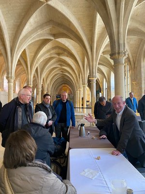 Nach einem gemeinsamen Mittagessen und einem ausführlichen Gespräch mit Bischof Philippe über seine Diözese und seine christlichen Überzeugungen besuchten wir das "Séminaire de Barbelés" – das sogenannte "Stacheldrahtseminar" bei Chartres. Dieses katholische Priesterseminar existierte von 1945 bis 1947 in französischen Kriegsgefangenenlagern. Es wurde auf Initiative der französischen Regierung und mit Unterstützung des Apostolischen Nuntius in Frankreich, Angelo Giuseppe Roncalli – dem späteren Papst Johannes XXIII. – gegründet. Ziel war es, deutschsprachige Priester und Seminaristen trotz ihrer Kriegsgefangenschaft auszubilden und sie auf ihre spätere Verantwortung in Deutschland vorzubereiten. Darüber hinaus sollten sie in demokratischen Werten unterrichtet und von der Ideologie des Nationalsozialismus distanziert werden.