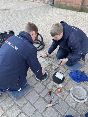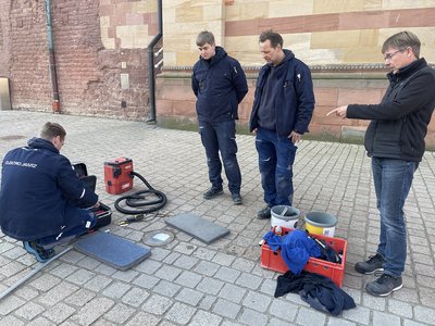 Arbeiten an den Bodenstrahlern © Domkapitel Speyer