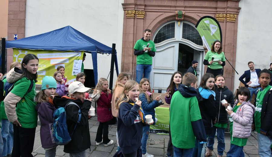 Den rund 160 Kindern und Jugendlichen – viele in grünen „72-Stunden“- T-Shirts oder in Pfadfinderkluft – aus den Bistümern Speyer und Trier, die nach St. Ingbert gekommen sind, ist die Vorfreude deutlich anzumerken. Bei einem Eis durchsuchen sie die Aktionstaschen, die jede Gruppe erhält. Darin lauter Dinge, die für gute Stimmung während der Arbeit sorgen sollen, darunter Becher, Aufkleber und eine USB-Lautsprecherbox.