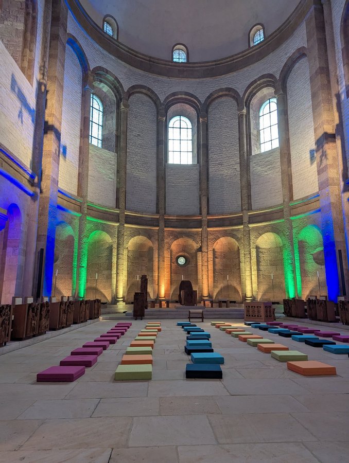 Speyer. Unter dem Motto „About you. And me.“ verbrachten am vergangenen Samstag Jugendliche aus Schöneberg-Kübelberg, Hettenleidelheim und Speyer gemeinsam mit ihren Firmbegleiter*innen einen Erlebnistag in und um den Speyerer Dom. Dabei konnten sie den Dom sozusagen mit allen Sinnen entdecken und erleben: Im Hören, im Liegen mit Blick zur Vierung, oben auf dem Turm, mit Farbe in der Krypta, im Gespräch mit Weihbischof Georgens und beim interaktiven Gottesdienst in der Apsis mit toller Musik der Band CK and Friends. Der Begegnungstag wird zweimal jährlich von den Abteilungen Jugendseelsorge und Pastorale Grunddienste veranstaltet.