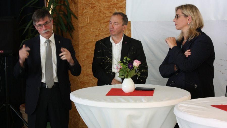 Arbeitsministerin Anke Rehlinger, der Vorsitzende des Caritasverbandes für die Diözese Speyer, Karl-Ludwig Hundemer (li) und IHK-Vizepräsident Wolfgang Herges bei der Diskussion.