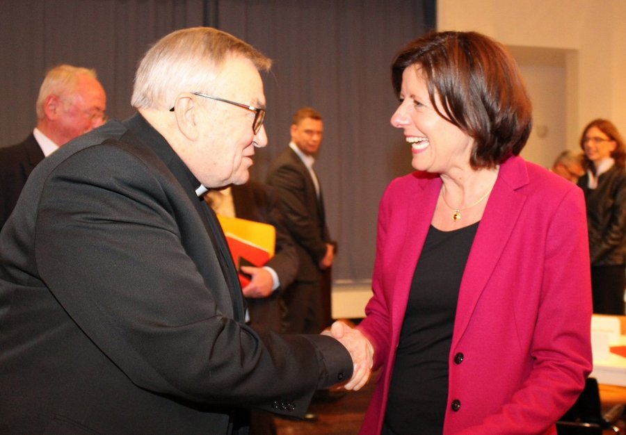 Die rheinland-pfälzische Ministerpräsidentin Malu Dreyer würdigte in ihrer Ansprache den "offenen und konstruktiven Dialog zwischen katholischer Kirche und Landesregierung". Die Ministerpräsidentin hob die besondere Rolle der Kirche in der aktuellen Flüchtlingskrise hervor. Sie trage mit ihren vielen Helferinnen und Helfern sowie den Hilfsorganisationen dazu bei, den Menschen, die vor Krieg und Terror fliehen, eine menschenwürdige Unterbringung zu gewährleisten. Gleichzeitig setze sich die Kirche in erheblichem Maß in der Seelsorge ein. Der Mainzer Bischof, Kardinal Karl Lehmann, dankte in seinem Schlusswort Landesregierung, Landtag und Fraktionen für die gute Zusammenarbeit im vergangenen Jahr.
