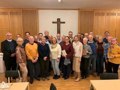 Das Nachtreffen bot für Initiatorin Irina Kreusch die Gelegenheit, einigen Teilnehmenden besonders zu danken: So etwa Dr. Klaus Eichenlaub, der zur Routenplanung des Weges von Speyer durch Südpfalz, Elsass, Vogesen und Jura Maßgebliches beitrug. Ein Dankeschön erhielten auch Elena Kritzer und Patrick Halter, die für die Pilgernden eine WhatsApp-Gruppe eingerichtet und moderiert haben, "um einfach immer in Verbindung untereinander zu bleiben", wie Halter das Ziel beschrieb. Als "gute Fee" im Hintergrund und "für ganz viel Support bei der Organisation" dankte Kreusch ihrer Mitarbeiterin Claudia Neber. Und für die jetzt noch entstehende "Erinnerungsarbeit" bedankte sie sich bei Stephanie und Wolfgang König: Das Pilgerehepaar arbeitet jetzt an einem Fotobuch für alle mit vielen Bildeindrücken aus den zwölf Etappenwochen. "Es sind viele schöne Eindrücke entstanden. Beim Betrachten der Bilder denke ich immer wieder: Schade, dass ich noch nicht im Ruhestand bin, ich wäre gerne den kompletten Weg gelaufen", sagt Wolfgang König schmunzelnd.