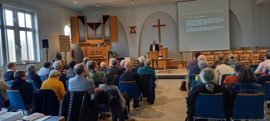 Im Zentrum des Tages standen zwei Fachreferate. Am Vormittag stellte die mennonitische Historikerin Dr. Astrid von Schlachta Anfänge und Weiterentwicklungen der Täuferbewegung als einen Teil der reformatorischen Bewegung da. Dabei wurde deutlich, dass zentrale Begriffe täuferischer Theologie wie Mündigkeit, Nonkonformismus und Gewaltfreiheit das mennonitische Selbstverständnis bis heute prägen und zugleich einen wichtigen Beitrag auch für ein ökumenisches Lernen in den anderen Konfessionen darstellen.