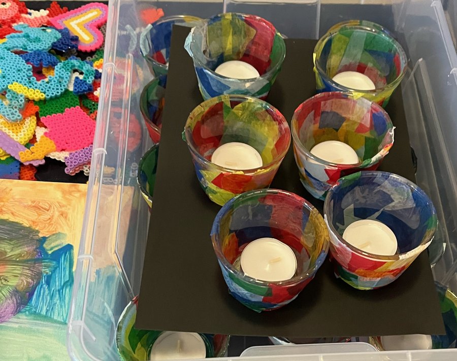 Beim Spendenprojekt "Kinder helfen Kindern" wurden unter anderem bunt beklebte Teelichtgläser verkauft © Kita St. Dominikus