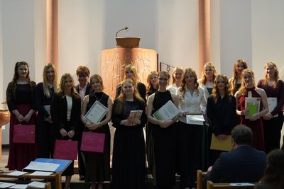 Kaiserslautern. Die Abiturfeier des St.-Franziskus-Gymnasiums fand am Freitag, dem 27. März, in der Apostelkirche statt. Feierlich umrahmt durch die Beiträge von Orchester, Blockflötenensemble, Chor und der AG für Alte Musik erhielten 48 Abiturientinnen ihre Reifezeugnisse.
