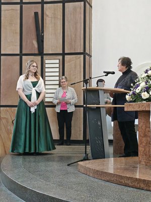 In Anklang an das Motto „ABIelle-Flucht aus Ursulas Höhle“ nach dem Film „Arielle die Meerjungfrau“ appellierte die Schulleiterin, Ursula Vollrath, an die nun ehemaligen Schülerinnen: „Werdet zu Stimmen des Friedens, Gestalterinnen der Gerechtigkeit, Anwältinnen der Schöpfung, wie Franziskus es war. Nicht perfekt – aber beharrlich. Nicht laut um jeden Preis – aber verlässlich hörbar. Und habt den Mut, auch dann weiterzuschwimmen, wenn Land noch nicht in Sicht ist. Manchmal sieht man das Ziel erst, wenn man sich auf den Weg gemacht hat. Im Namen des gesamten Kollegiums gratuliere ich euch herzlich zum Abitur. Geht mit Gottes Segen, mit Freude und mit der Gewissheit: Eure Stimme zählt.“