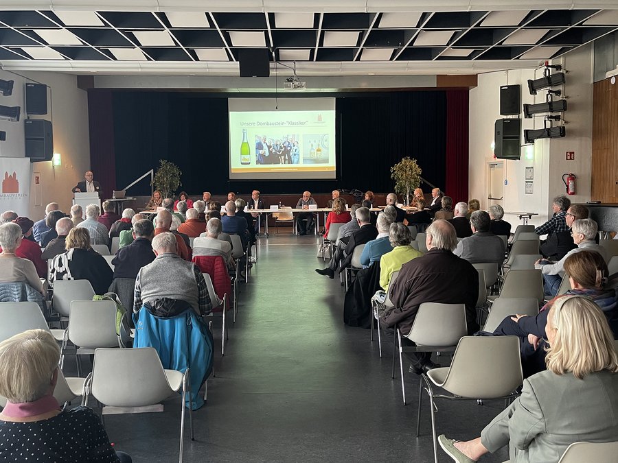 Den Geschäftsbericht begann Jung mit einem Lob an seine Vorstandskollegen, denen er für die gute Zusammenarbeit dankte. Dabei hob er das Kreativteam hervor, dass immer wieder neue Ideen für Produkte des Dombauvereins entwickele. In seinem Bericht hob der Vorsitzende in erster Linie die Bedeutung der Mitgliedergewinnung hervor. Den aktuellen Stand der Mitgliedschaften bezifferte er auf 2503. Mit dem Hinweis „es ist noch Platz für viele Mitglieder“ bat er die Anwesenden darum, auf andere zuzugehen und zum Eintritt in den Verein zu bewegen. Um Nachwuchs zu werben bietet der Verein seit einem Jahr eine neue, kostenlose Jugendmitgliedschaft an.
