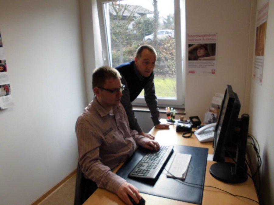 Anthony Woodard ist seit April 2015 mit Aufgaben wie Anschreiben verfassen und Statistiken überwachen befasst. Bernd Krämer zufolge ist er aus dem Verwaltungsbetrieb nicht mehr wegzudenken. „Unser Netzwerk betreut mittlerweile 170 Klienten“, macht Krämer den Umfang des Datenaufkommens klar. Das Interdisziplinäre Netzwerk Autismus des Caritasverbandes Speyer hält an seinen Standorten Zweibrücken und Herxheim ein umfangreiches Hilfsangebot vor. Dabei geht es um die individuelle und kontinuierliche Beratung von Menschen mit Autismus und ähnlicher Symptomatik. Eltern, Angehörige, Bezugspersonen und Fachkräfte (etwa Mitarbeiter von Kindertagesstätten, Wohneinrichtungen, Werkstätten) sind miteingebunden. Bernd Krämer und seine Kollegen bringen ihre Kompetenz auf den verschiedensten Feldern ein. Unterstützung leisten sie beispielsweise in den Bereichen Ausbildung, Arbeit, Wohnen und Freizeit. Auch die Krisenintervention in schwierigen Zeiten, Hilfe bei der Antragstellung auf Kostenübernahme und die Vermittlung von medizinisch-therapeutischen Angeboten sind tägliche Netzwerk-Themen. Nähere Informationen dazu gibt es unter www.netzwerkautismus-cbs-speyer.de im Internet.