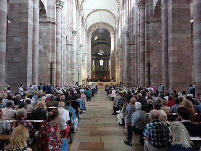 Der Vorsitzende des Dombauvereins, Gottfried Jung, wies in seiner Begrüßung darauf hin, dass der Rhein keine Trennlinie sei. Der Kaiser- und Mariendom, der mit Steinen aus dem Pfälzer Wald und dem Odenwald gebaut worden sei, sei „die“ Kathedrale für die Menschen links und rechts des Rheins. Alexander Becker, Mitglied des baden-württembergischen Landtags aus Rastatt und Präsidiumsmitglied des Landesmusikrats Baden-Württemberg würdigte als Schirmherr der Veranstaltung die auftretenden Chöre und den Musikverein Edelweiß Pfaffenrot, der in diesem Jahr sein 100jähriges Jubiläum feiert und für den das Konzert im Dom der Höhepunkt des Jubiläumsjahres war.