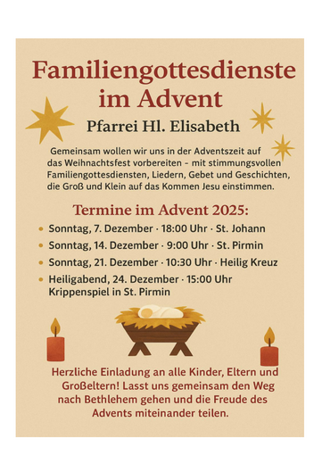 06.11.25Herzliche Einladung zum Familiengottesdienst, am 7. Dezember, um 10 Uhr, in der...