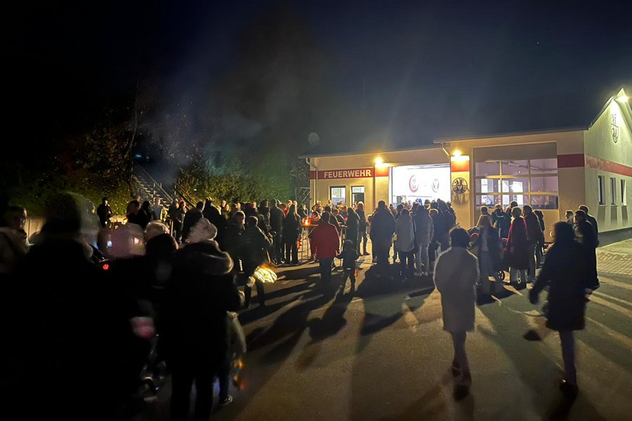 Zum Schluss sangen alle das Lied "Durch die Straßen auf und nieder, leuchten die Laternen wieder", bevor sich der farbenfrohe Laternenzug durch das Dorf in Bewegung setzte.