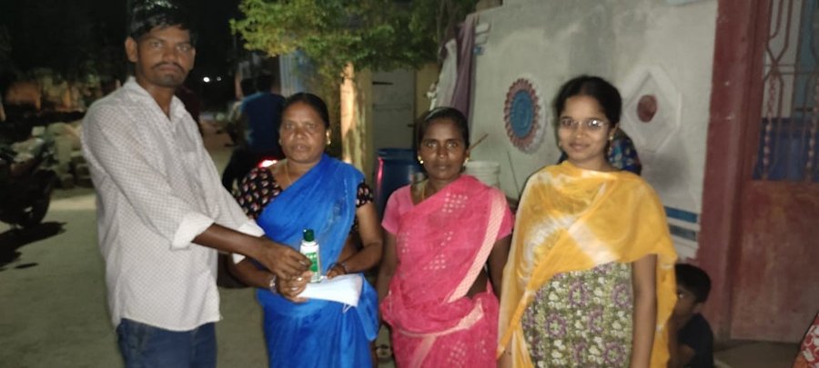 Wir haben 7000 medizinische Masken und 400 mal 100 ml Desinfektionsmittel an 400 Familien verteilt, worüber die Leute sich sehr gefreut haben und sehr dankbar waren.