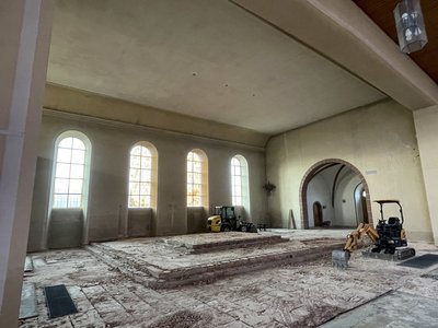 - Die Bänke der Kirche sind auseinandergebaut. Hier auch nochmals ein Dankeschön an die fleißigen Helfer. Es ist auch geplant das Holz der Bänke für den Bau der neuen Kirchenbänke zu verwenden.