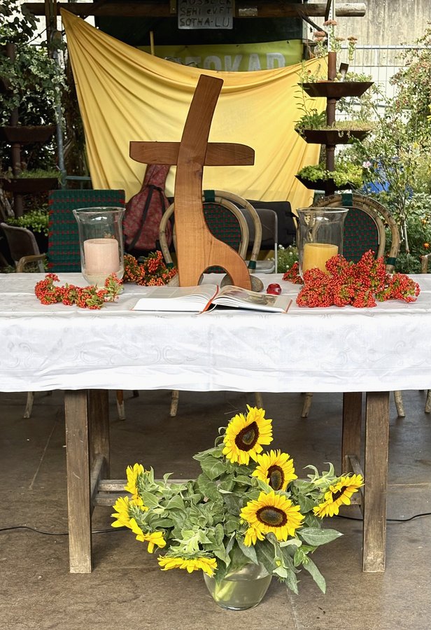 Seit einigen Jahren feiert die Arbeitsgemeinschaft Christlicher Kirchen (ACK) in Ludwigshafen im September einen Schöpfungsgottesdienst. Dabei arbeiten fünf Konfessionen zusammen. In diesem Jahr wurde dieser Gottesdienst am Freitag, 5. September, um 18:00 Uhr im Hackgarten gefeiert. Der Gottesdienst stand unter dem Motto „Gott, du hilfst Menschen und Tieren“ (Psalm 36,7):