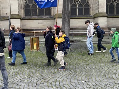 In Speyer wurde das Licht von Mitgliedern unserer Pfarrei abgeholt und im Taizé-Gebet in der Kapelle der Kirche Herz Jesu feierlich empfangen und an die Betenden verteilt. Im Anschluss an das Taizé-Gebet kamen zahlreiche Menschen auf den Vorplatz der Kirche, um das Licht für ihre Familien und Häuser abzuholen.