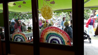 Gestärkt mit Currywurt und Pommes genossen Eltern, Kinder und Besucher den sonnigen Mittag im Außengelände der Kita. Es wurde gespielt, gelacht und erzählt. Das Kaffeemobil der Sparkasse, die den Erlös komplett der Kita zugute kommen lassen, sorgte für die nötige Energie bei den Erwachsenen. Der selbstgebackene Kuchen und die Tombula rundeten das vielfältige Angebot ab.