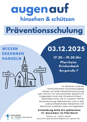 zur Präventionsschulung am 03. Dezember 2025 von 17:30 - 19:30 Uhr in Krickenbach
