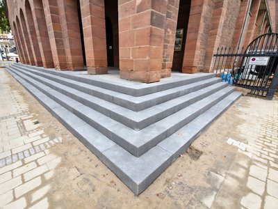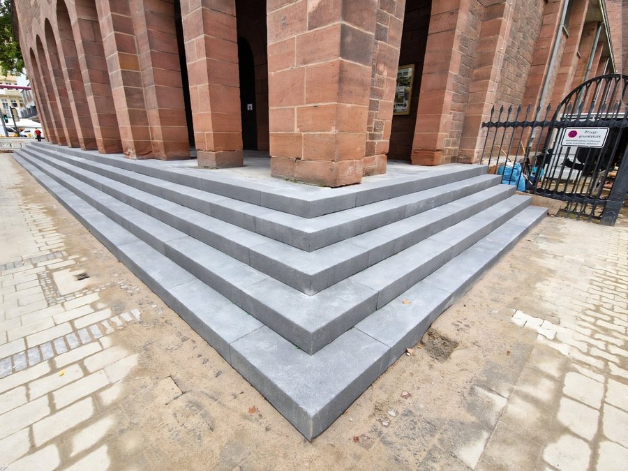 die Kirchenstufen zu unserer Kirche St. Ludwig, sowohl am Hauptportal als auch am Seiteneingang, sind inzwischen komplett neu verbaut. Insgesamt 101 Blockstufen wurden durch Firma Ragucci Tief- & Straßenbau GmbH aus Eberbach erfolgreich neu gesetzt.