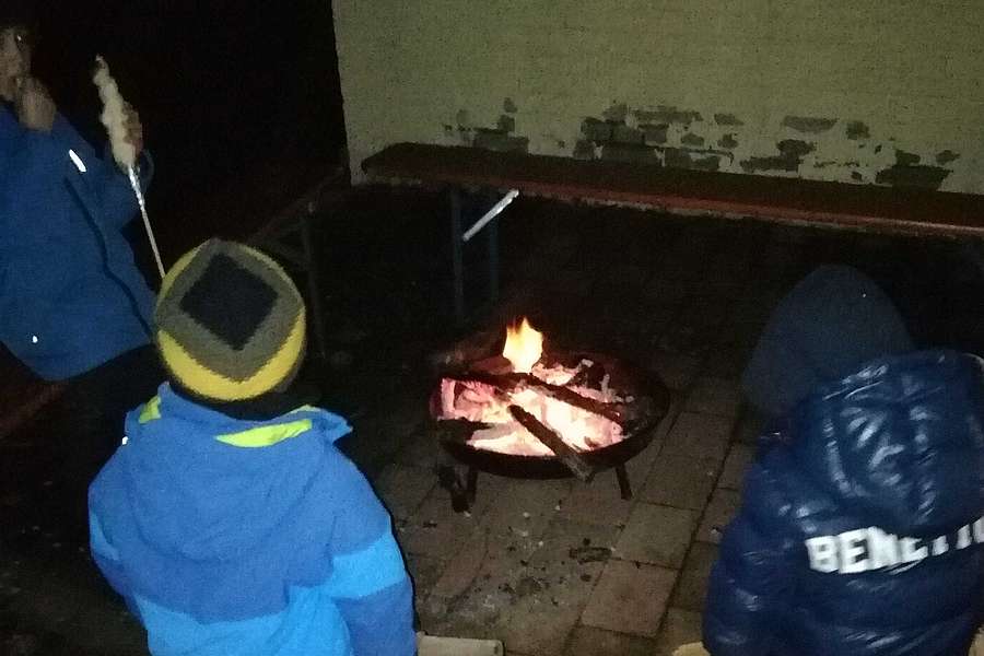 Unter dem Motto "Zünd’ ein Licht an, für die Menschen dieser Welt" haben wir uns zu einer Martinsfeier getroffen. Da der Martinstag der Tag des Teilens und der Nächstenliebe ist, haben wir, nach einem kleinen Martinsspiel und einem Laternenumzug, bei einem Martinsfeuer Stockbrot, Martinsgänsen, Kürbissuppe, heißen Würstchen, Glühwein und Kinderpunsch, Begegnung geteilt. Es war ein toller Abend.