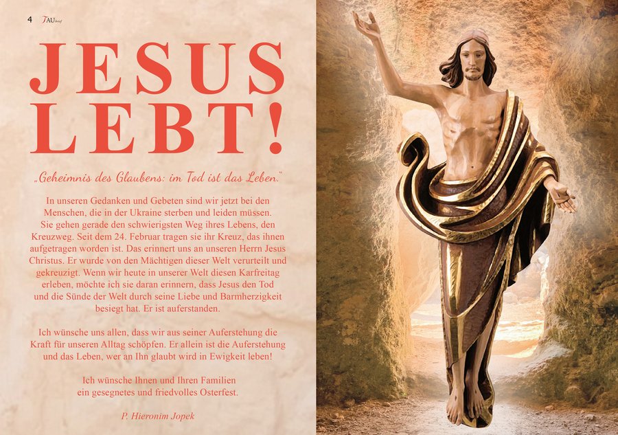Ich möchte Sie zum Lesen des TAU-Briefes in dieser Kriegszeit einladen, und hoffe, dass Sie durch die Lektüre ermutigt werden, noch mehr Gutes zu tun, und dass in unserer Welt die Wahrheit siegt und wir nie mehr getäuscht werden. Während ich diese Worte schreibe, kommt mir vor allem ein Gedanke in den Sinn: Ich möchte Sie um Ihr Gebet für die Ukraine und für unsere Welt bitten.