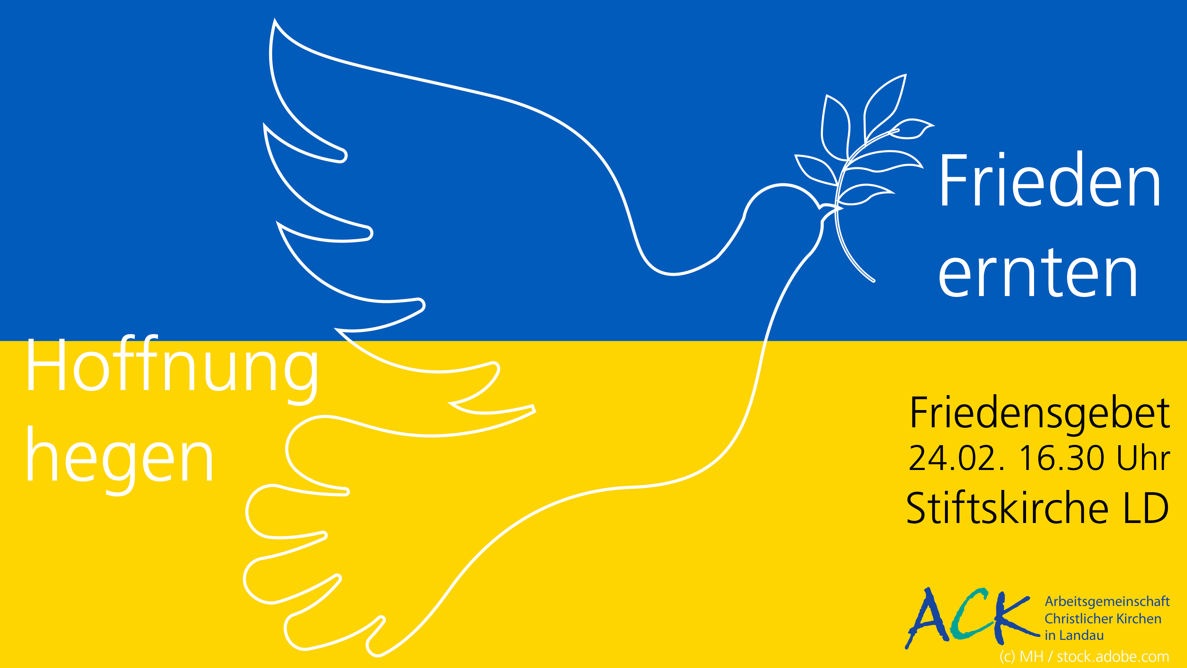Im Vorfeld auf eine Kundgebung auf dem Landauer Rathausplatz findet am Samstag, 24. Februar um 16.30 Uhr in der Stiftskirche in der Landauer Innenstadt ein ökumenisches Friedensgebet statt, zu dem die Arbeitsgemeinschaft Christlicher Kirchen (ACK) Landau einlädt.