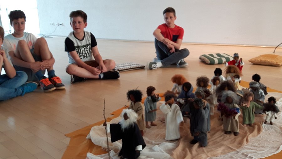 Auf die Suche nach Antworten auf diese Fragen machten sich am Dienstag, 11. April 25 Kinder, Jugendliche und Erwachsene. Zunächst erinnerten sie sich mittels biblischer Erzählfiguren an einer der wichtigsten biblischen Erzählungen: den Exodus, d.h. die Befeiung des Volkes Gottes aus der Sklaverei Ägyptens.