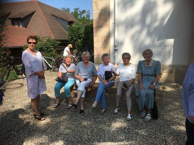 Probesitzen der Gemeinde auf der neuen Bank