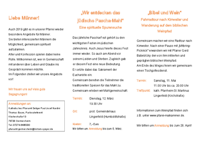 Auch 2019 gibt es in unserer Pfarrei wieder besondere Angebote für Männer.