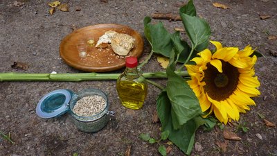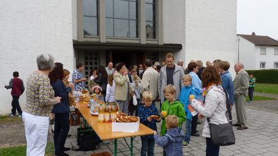 Nach einer Stärkung auf dem Kirchenplatz machten sich schließlich einige Familien auf den Weg zur Familienwanderung. Mitglieder des Arbeitskreises Familie hatten dabei verschiedenen Stationen rund um die Sonnenblume vorbereitet. Dan Abschluss bildete ein gemeinsames Picknick im Kirchengarten.