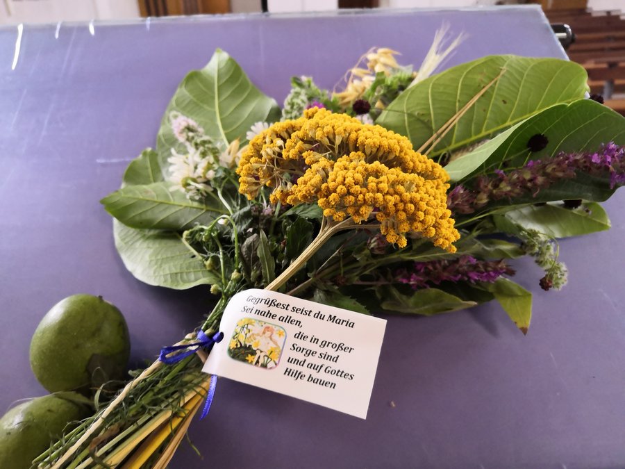 Nun so ein Kräuterstrauss ersetzt keinen Blitzleiter. Doch jetzt zur Herbstzeit ist vielleicht ein Salbeitee, ein Kräuteraufguss oder ein Thymianöl hilfreich. Die Frauen der vorherigen Generationen hatten noch die Kenntnisse, welche Kräuter heilsam sind. Die Zeit im August war wohl passend, um die Pflanzen mit den besten Wirkstoffen zu trocknen. Dazu den Beistand Mariens zu erbitten, ist sicher für die Seele Heilung hilfreich. Wir Frauen in Weitersweiler halten diese Tradition aufrecht und freuen uns, wenn die Sträuße gut ankommen. Ein lieber Segen von uns für unsere Gemeinde, das motiviert uns jedes Jahr, die Kräuter zu sammeln und zu binden. Pfarrer Metzinger fand zur Kräuterweihe die passenden Worte. Gerade an diesem Sonntag versagte die Technik. Es wurde bewusst, wie sehr wir doch von der Technik abhängig sind. Unsere eigenen Fähigkeiten vernachlässigen wir.