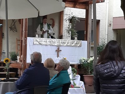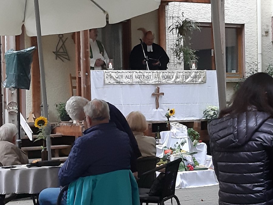 Wir haben dieses Fest in diesem Jahr ökumenisch begangen, mit ca. 80 Christen im Hof der BrauArt in Sausenheim unter Einhaltung der derzeit gültigen Corona-Vorschriften mit genügend Abstand. Auch das Wetter war uns wohlgesonnen, trotz verschiedener Prognosen blieb es trocken.