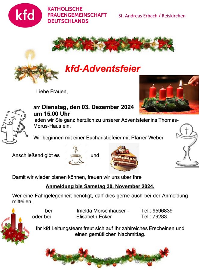 Anmeldung bei Imelda Morschhäuser (Tel. 9596839) oder Elisabeth Ecker (Tel. 78283).