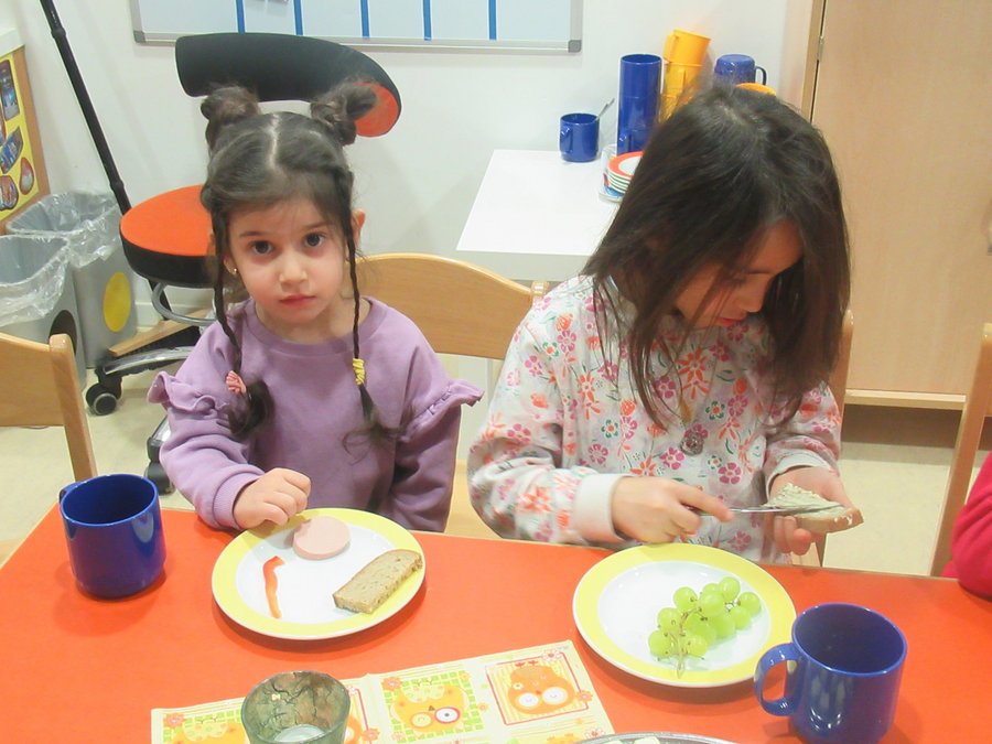 Das gemeinsame, gesunde Frühstück kommt bei den Kindern sehr gut an. Sie entdecken gesunde Ernährung als ein positives und leckeres Erlebnis, eine Abwechs-lung zum regulären Frühstück von zuhause. In der Gemeinschaft schmeckt es einfach am besten! Die Brote können und dürfen die Kinder eigenständig bestreichen. Jede/r entscheidet für sich, was er oder sie heute gerne aus der großen Vielfalt frühstücken möchte.