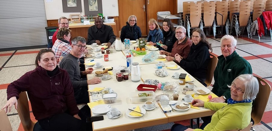 Zum Abschluss wurde an der Kirche St. Ludwig gemeinsam das Vater unser gebetet, bevor Pfr. Thomas den Segen erteilte. Das gemeinsame Frühstück rundete den Fahrradkreuzweg ab.