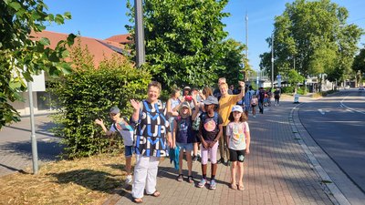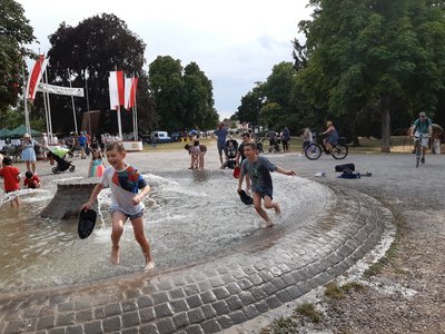 Auf dem Rückweg zum Bahnhof wurde dann noch ein Zwischenstopp am Brunnen im Domgarten eingelegt, der für viele eine willkommene Abkühlung brachte. Andere bevorzugten es, die "Spinne" zu erklettern. In der Maximilianstraße wurde ein letzter Stopp vor dem Bahnhof eingelegt: Zeit für ein Eis musste natürlich auch sein - besonders bei der Hitze. Dann ging es ohne weitere Unterbrechung die letzten Meter zum Bahnhof. Im Zug waren sich alle einig: Schade, dass dieser schöne Tag für die MINI's der Pfarrei Hll. Petrus und Paulus vorbei ist! Mögen diesem noch viele folgen!