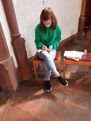 In einem szenischen Spiel, das einen möglichen Alltag einer Familie dargestellt hat, sowie einer Taube aus Holz, die mit jedem Schritt im Gottesdienst mehr und mehr Gestalt und Farbe annahm, bis am Ende der eigene Name auf ihr stand und uns zeigt, dass wir Träger des Geistes und Verkünder der Botschaft Jesu Christi sein dürfen, arbeiteten wir das Thema kind- und jugendgerecht aus.
