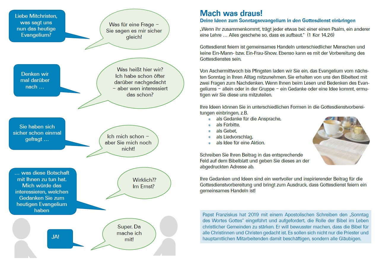 - Sich vom Evangeliumstext anhand der LeseImpulse inspirieren lassen