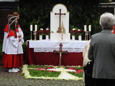 Wir bedanken uns für die Prozession und das gemeinsame Gebet in Ballweiler bei der Freiwilligen Feuerwehr Ballweiler/Wecklingen, dem Musikverein Ballweiler/Wecklingen, bei den Messdienerinnen und Messdienern, bei dem Kirchenchor St. Josef Ballweiler, den Kommunionkindern und ihren Eltern, den ehrenamtlichen Helferinnen und Helfern, der Gemeinde für die Gestaltung und den Aufbau der Altäre und bei allen, die mitgefeiert haben.