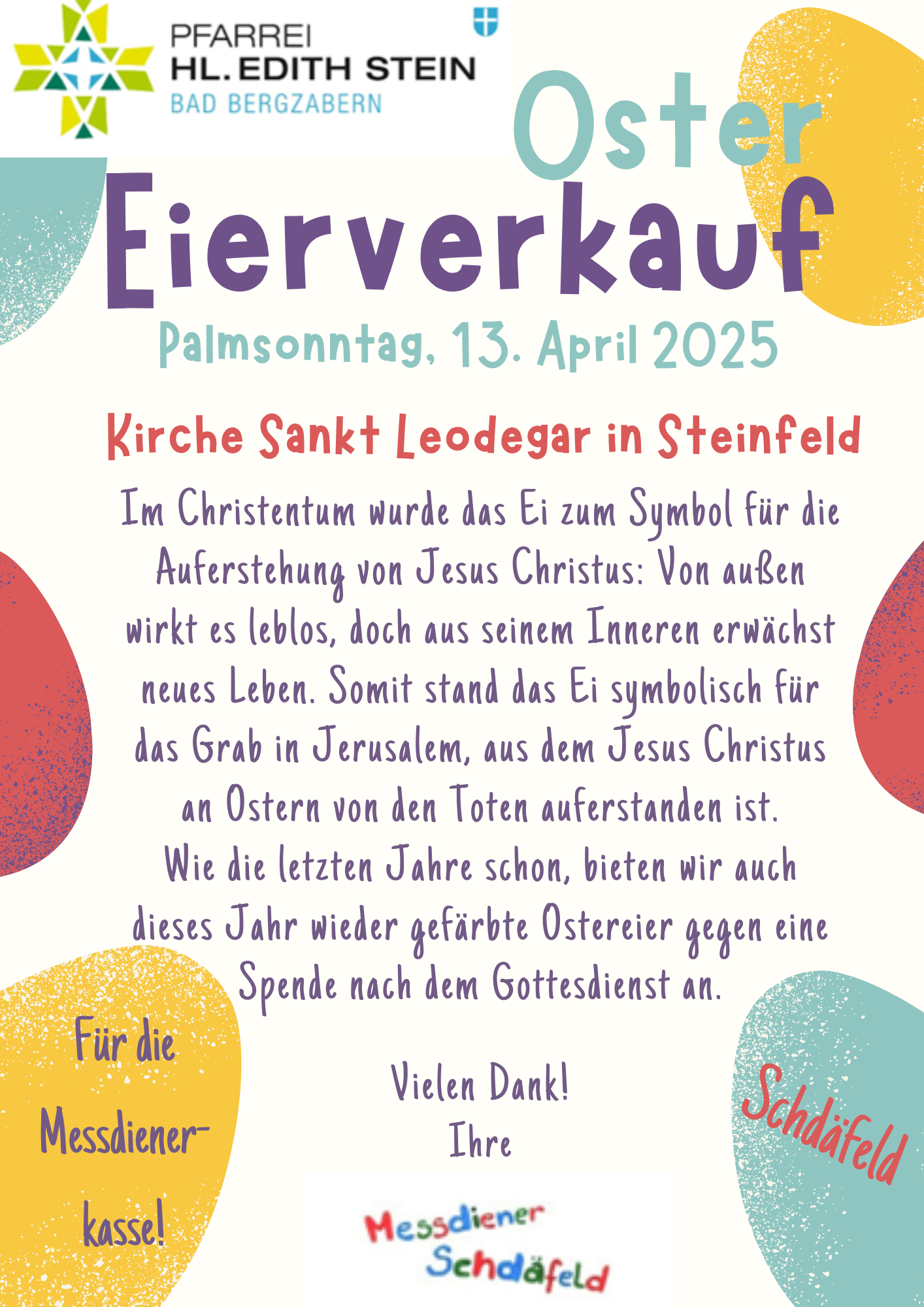 Die Messdiener Steinfeld bieten nach dem Palmsonntagsgottesdienst gefärbte Eier gegen eine Spende an (Ostereieraktion).