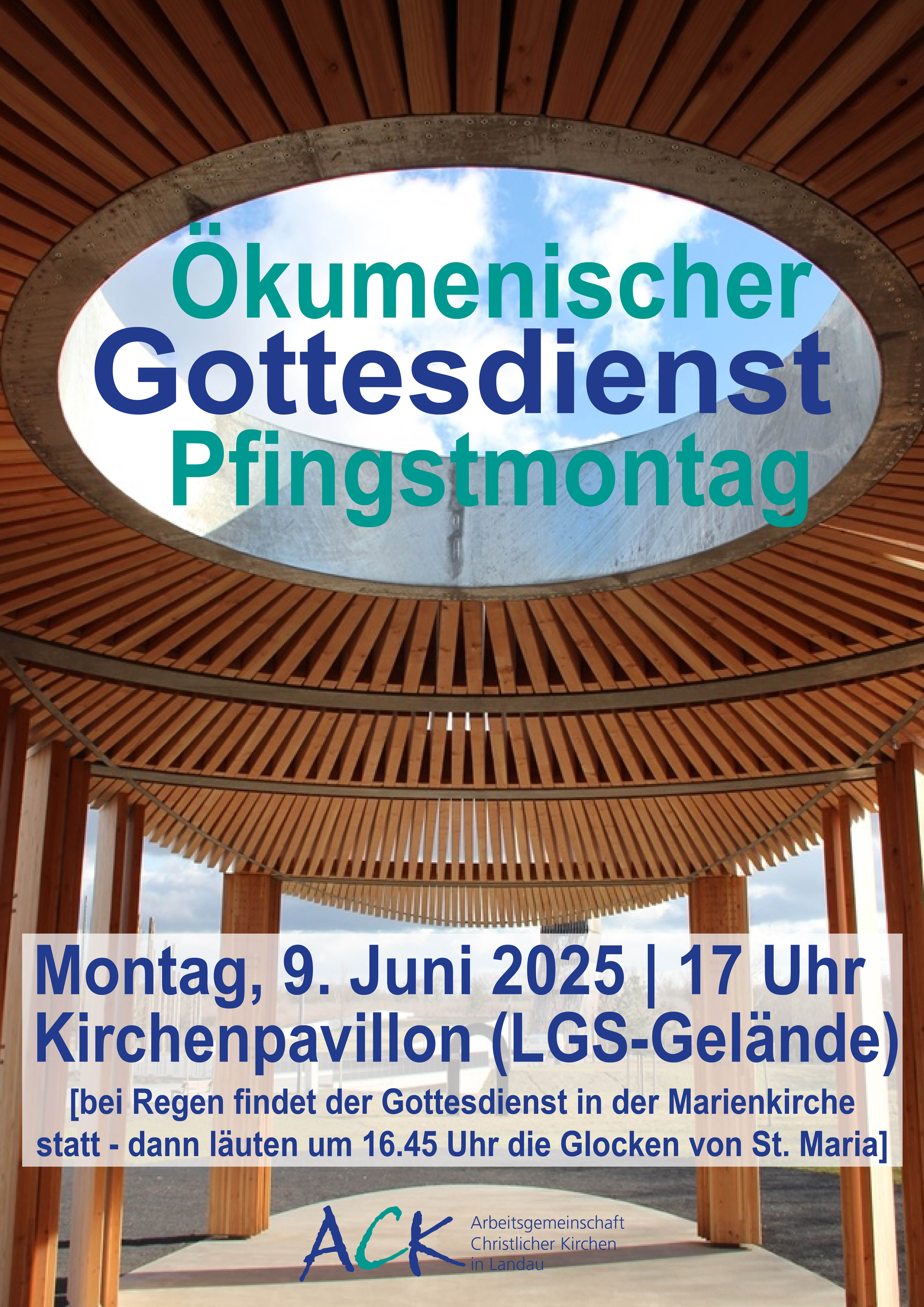 Die Arbeitsgemeinschaft Christlicher Kirchen in Landau (ACK) lädt am Pfingstmontag (9. Juni 2025) um 17 Uhr zu einem ökumenischen Gottesdienst am Kirchenpavillon auf dem Gelände der ehemaligen Landesgartenschau (Südpark) in Landau ein.