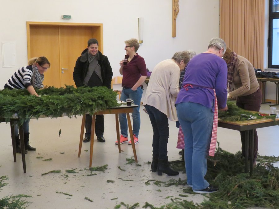 Am Donnerstag, dem 30. November 2017 trafen sich wieder die Frauen um den großen Adventskranz für die Kirche St. Andreas und auch den Adventskranz für die Auferstehungskirche zu binden.